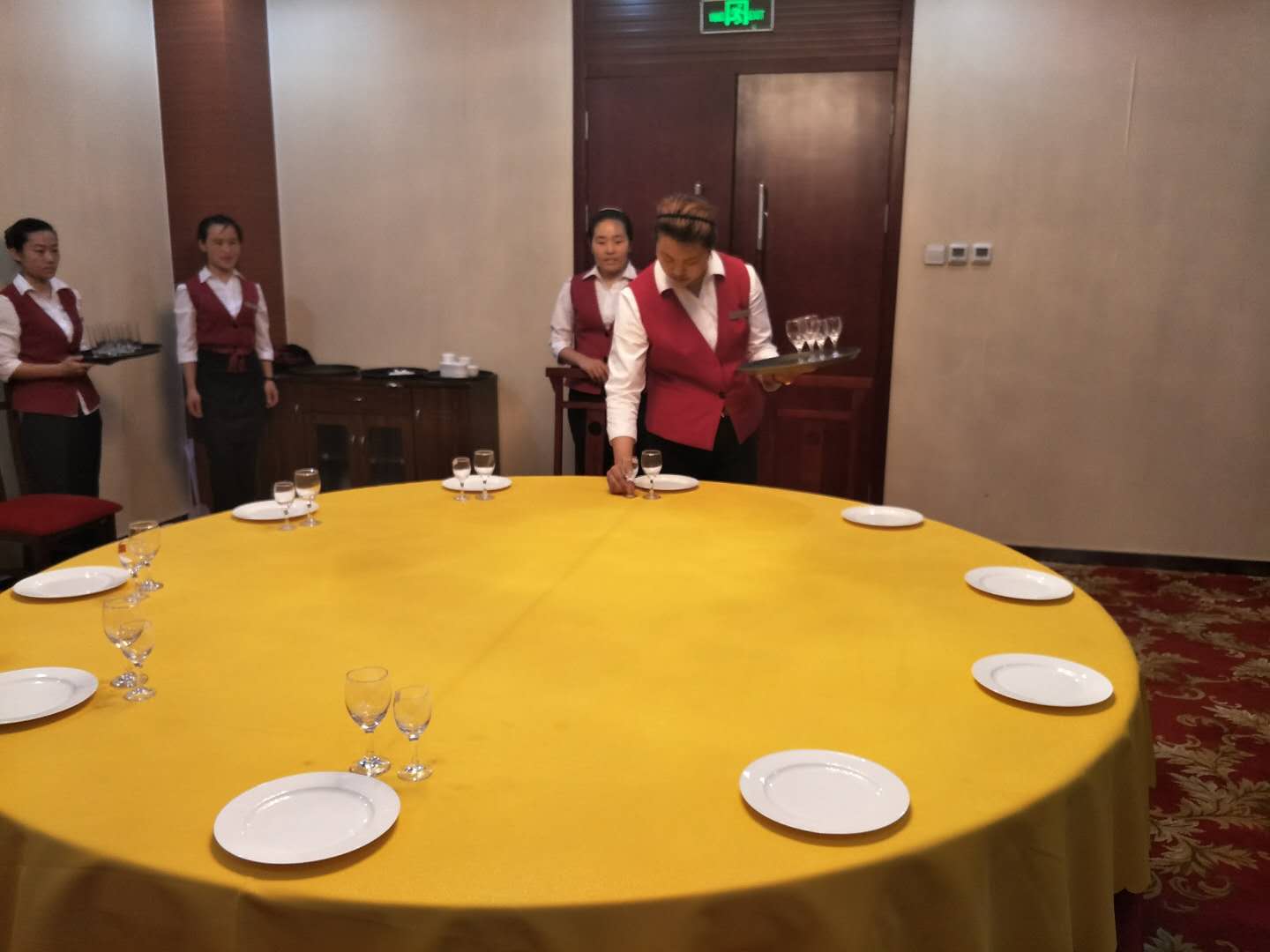 最后一項是進行服務(wù)考核,主要是檢驗餐飲服務(wù)員擺桌標(biāo)準(zhǔn),只見大家動作嫻熟、干凈到位,顯示出平時的基本功。
