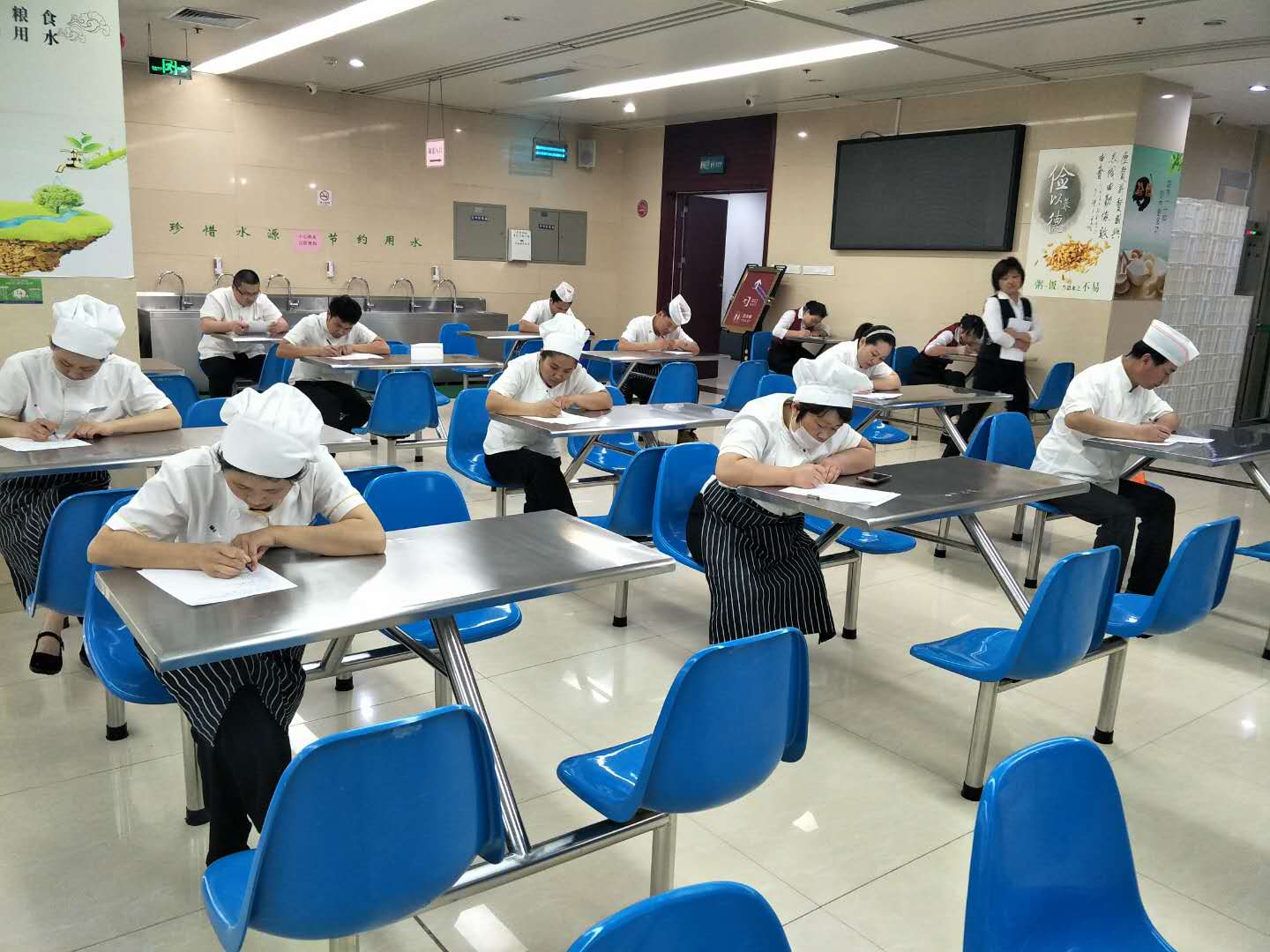 業(yè)務(wù)技能考核前,對全體人員進行了理論測試。平時大家舞刀、擺弄餐具的手,答起題了也毫不含糊,絕大多數(shù)對題目內(nèi)容信手拈來充滿自信。測試結(jié)束時,參考人員紛紛表示下去后還要加強學(xué)習(xí),確保理論更好地聯(lián)系實踐、促進技能提高。