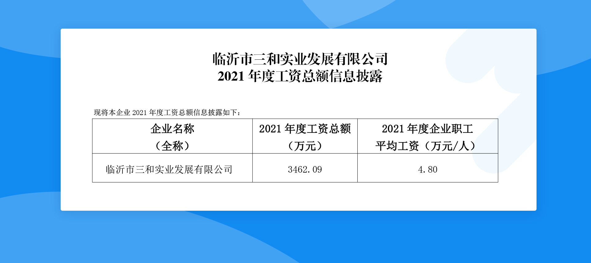 臨沂市三和實(shí)業(yè)發(fā)展有限公司2021年度工資總額信息披露