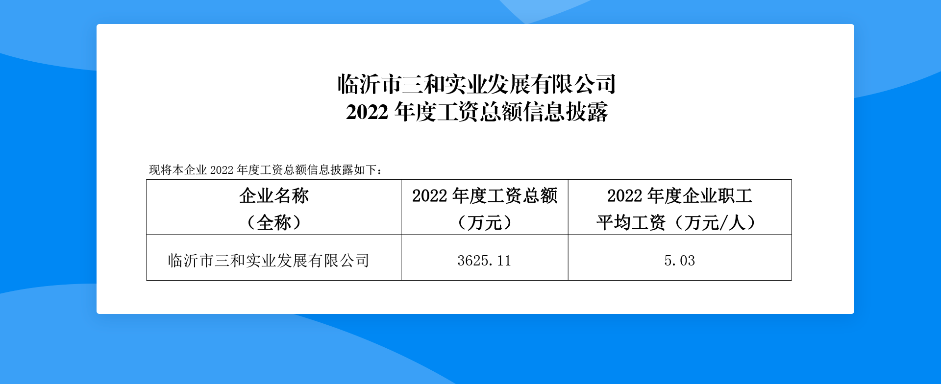 臨沂市三和實業(yè)發(fā)展有限公司2022年度工資總額信息披露